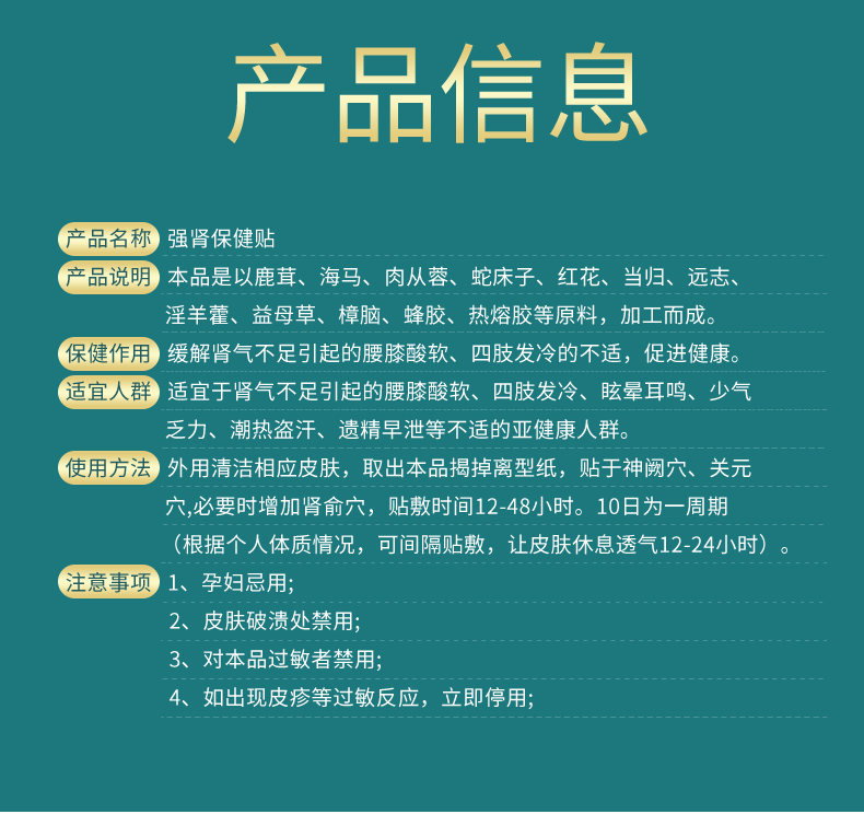 洛陽今世康外用貼劑生產(chǎn)廠家為您提供了馬寺驗方強腎貼,這里是關于強腎貼選自多味植物草本溫和益腎配方熬制,貼敷清爽獨立包裝,緩解腎氣不足引起的腰膝酸軟、四肢發(fā)冷的不適,穴位貼敷使用方法,欲了解更多外用貼劑廠家批發(fā)代理、oem貼牌代加工信息,歡迎頁面底部電話或留言咨詢!