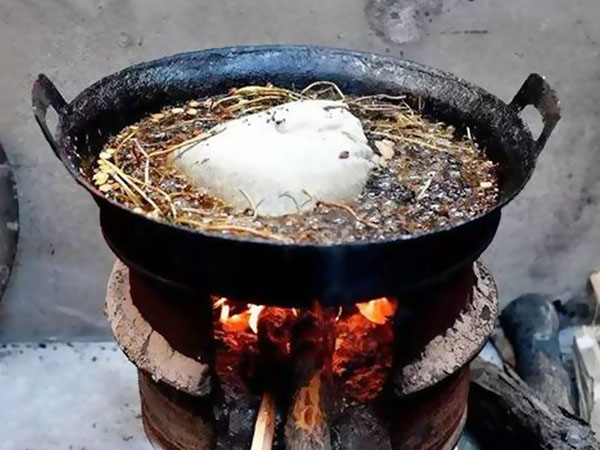 煉油是黑膏藥制作基質(zhì)的關(guān)鍵,煉油時(shí)要講究火候,不同的煉油程度都會(huì)影響到膏藥的“老”“嫩”品質(zhì)。